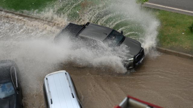 Osmaniye'nin Kadirli ilçesinde etkili olan sağanak hayatı olumsuz etkiledi.